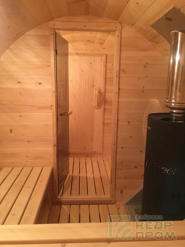 Баня бочка длиной 4,5 метра, в конструкции которой предусмотрена вместительная раздевалка и крыльцо со скамейками - идеальный вариант домашней баньки для тех, кто любит не только на славу попариться, но и поговорить по душам в компании близких людей.