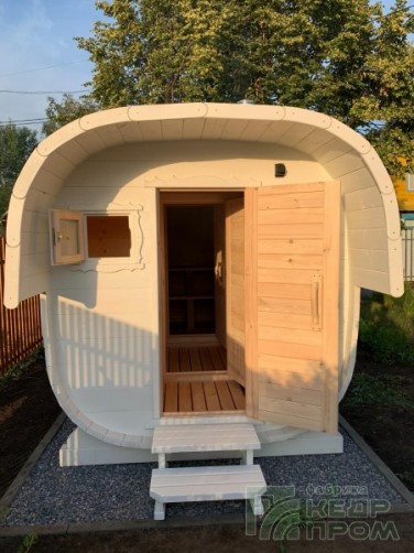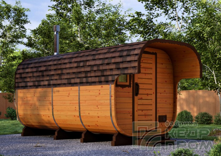 Баня-бочка из кедра квадратная 5,5м с козырьком №286